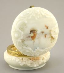 LOT 247 Wave Crest Glass Dresser Jar with Venetian Scene, 2 7/8" x 4" Diameter (interior noted). Estimate: $60 - $100 Sold For: $30 Auction Date: Tuesday, January 23 2024 at 4:00 PM