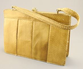 LOT 213 Vintage Snake Skin Purse, 7 1/4 x 10 1/2 x 3". Estimate: $50 - $60 Auction Date: Tuesday, January 23 2024 at 4:00 PM