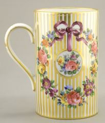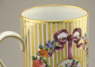 LOT 22 Hand Decorated Porcelain Mug, Script "D" to Base, 4 3/8"H (foot trim disruption noted). Estimate: $80 - $100 Auction Date: Tuesday, January 23 2024 at 4:00 PM