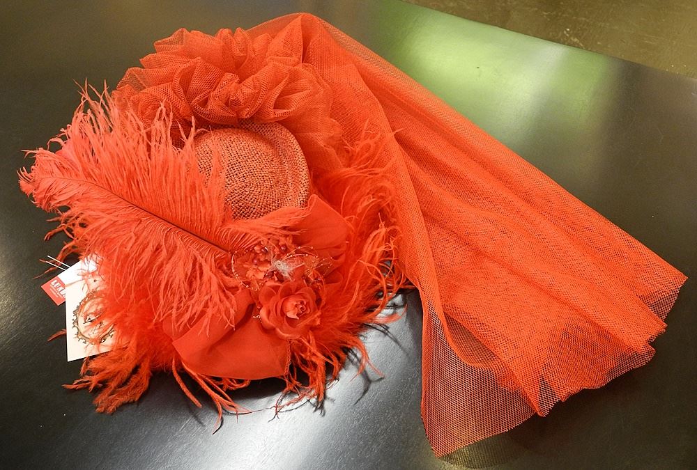 Red Victorian Style Ostrich Feather Hat by Elsie Massey.