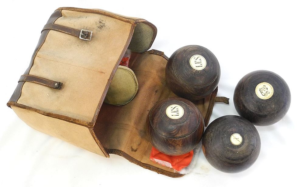 Set of 4 Wood Lawn Bowls with Canvas Bag, NO EXPORT.
