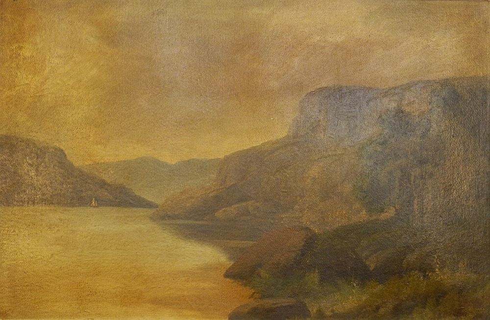 Naive Unsigned Oil on Canvas, 19 1/4" x 29 1/4", "Rivers Edge".