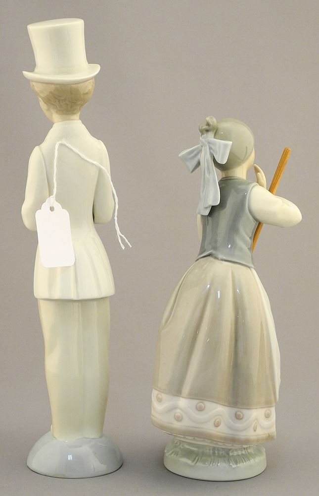 2 Lladro & Nao Figurines (9 & 11 1/2 "H) & Goldscheider Hound, 10 1/4"W (cracked).