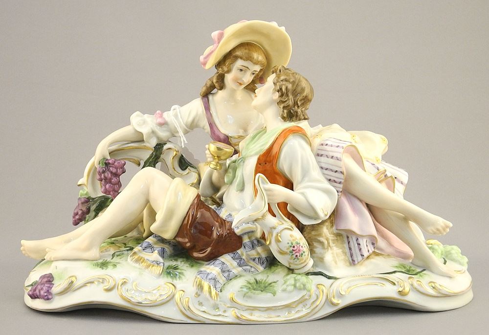 Porcelain Figurine of a Young Couple, 11 1/8"W.