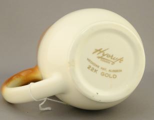 LOT 34 Hycroft Canada "Faye & Ben" Pitcher, 6 3/8"H. Estimate: $50 - $60 Sold For: $20 Auction Date: Tuesday, March 12 2024 at 4:00 PM