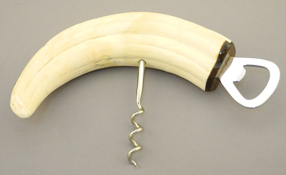 LOT 155 Boar Tusk Corkscrew & Bottle Opener, 6 7/8"L, NO EXPORT. Estimate: $60 - $100 Sold For: $40 Auction Date: Tuesday, March 12 2024 at 4:00 PM
