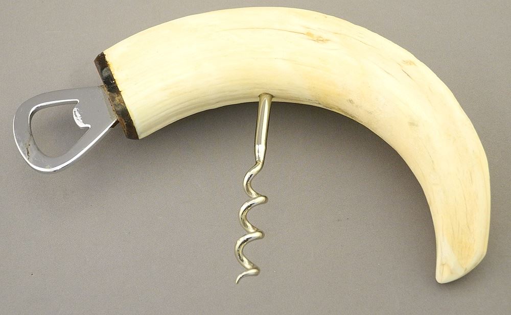 Boar Tusk Corkscrew & Bottle Opener, 6 7/8"L, NO EXPORT.