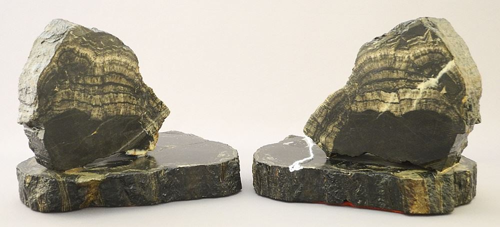Pair of Petrified Wood Bookends, Each 4 3/4" x 6" x 4 5/8".