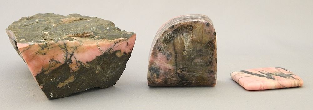 LOT 123 3 Saltspring Rhodonite Specimens, 1 3/4" - 4 3/4"W. Estimate: $50 - $60 Auction Date: Tuesday, March 12 2024 at 4:00 PM