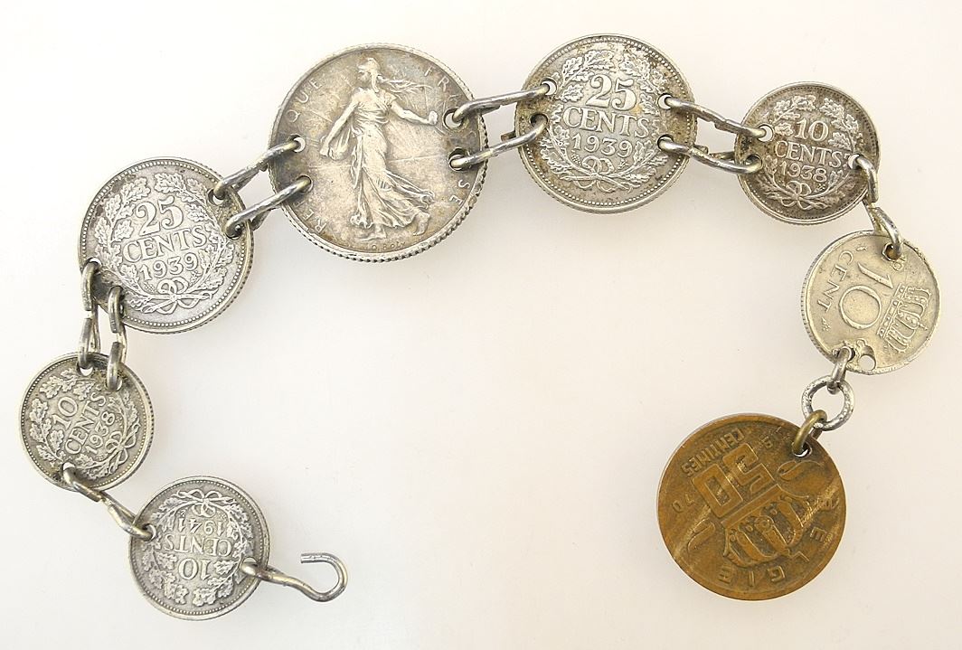 French Coin Bracelet, 7"L.