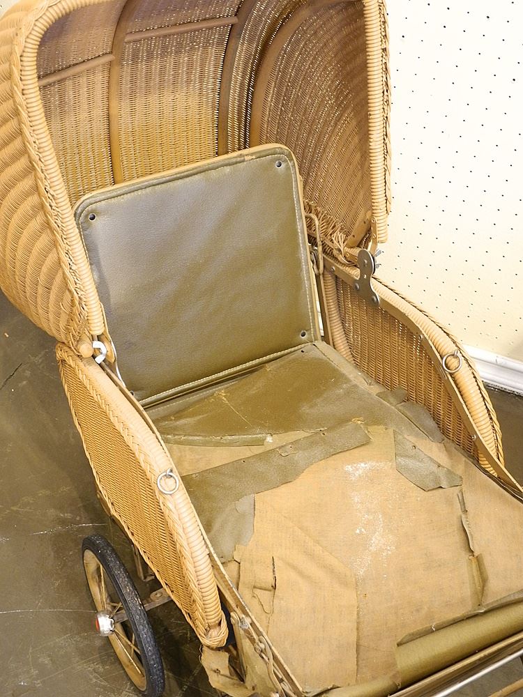 Vintage Wicker Childs Perambulator, 47"L.
