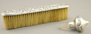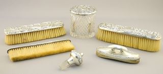 LOT 250A Collection of Hallmarked Silver Dressing Table Items: Stopper / Buffer / Jar / 3 Brushes. Estimate: $100 - $150 Sold For: $110 Auction Date: Tuesday, March 12 2024 at 4:00 PM