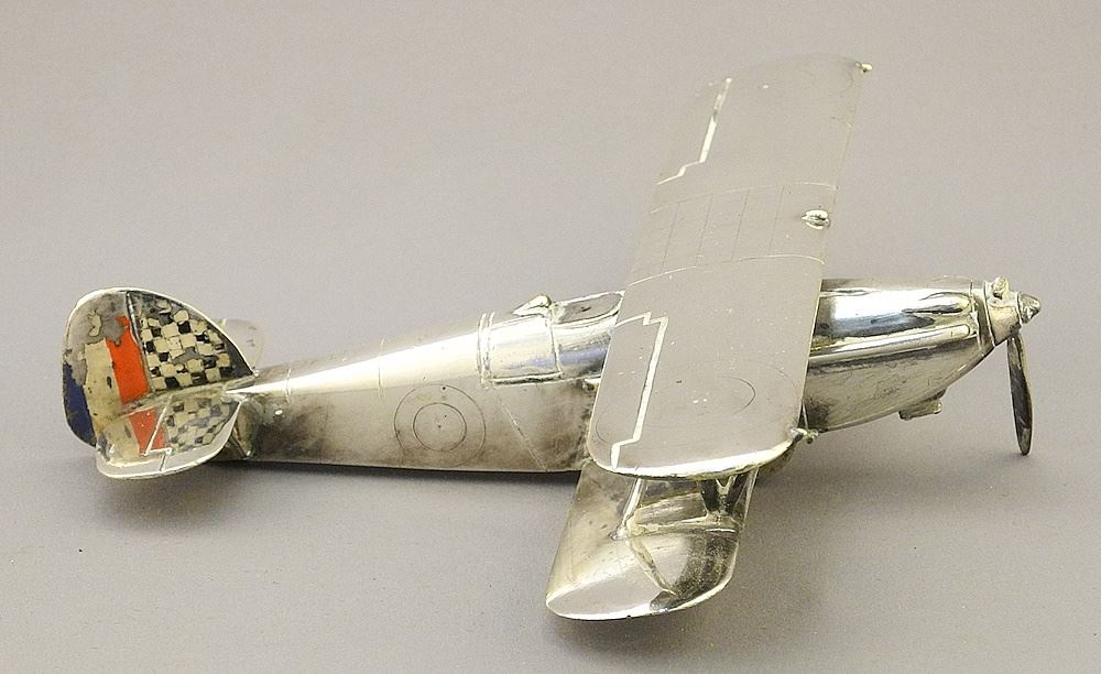 LOT 152 C. 1930's Silver Plated "Hawker Fury" Fighter Airplane, 6 1/4"L. Estimate: $100 - $150 Auction Date: Tuesday, March 12 2024 at 4:00 PM