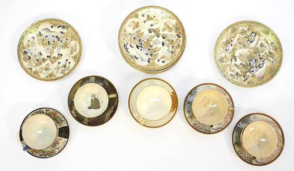 LOT 141 7 Satsuma Plates (7 1/8" Diam.) & 5 Teacup & Saucers & 1 Vase. Estimate: $150 - $300 Sold For: $100 Auction Date: Tuesday, May 14 2024 at 4:00 PM