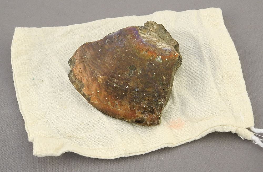 LOT 259 Ammonite/Ammolite Specimen, 2 1/4" x 2 1/2". Estimate: $75 - $125 Sold For: $45 Auction Date: Tuesday, May 14 2024 at 4:00 PM