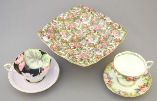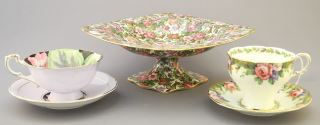 LOT 72 Two Paragon Tea Cups & Saucers and Crown Ducal Chintz Compote, 3 1/8"H. Estimate: $50 - $60 Sold For: $25 Auction Date: Tuesday, May 14 2024 at 4:00 PM