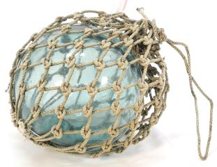 Net Wrapped Japanese Glass Fishing Float, 9" Diameter.