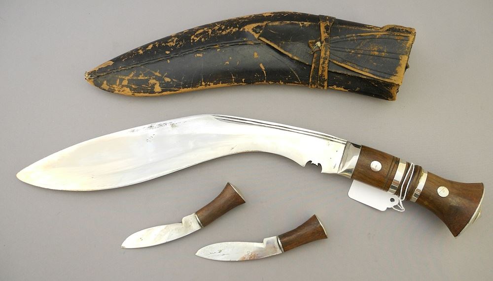 LOT 258 Gurkha Knife in Sheath with Secondary Knives, 17 1/2"L. Estimate: $50 - $100 Sold For: $100 Auction Date: Tuesday, May 14 2024 at 4:00 PM