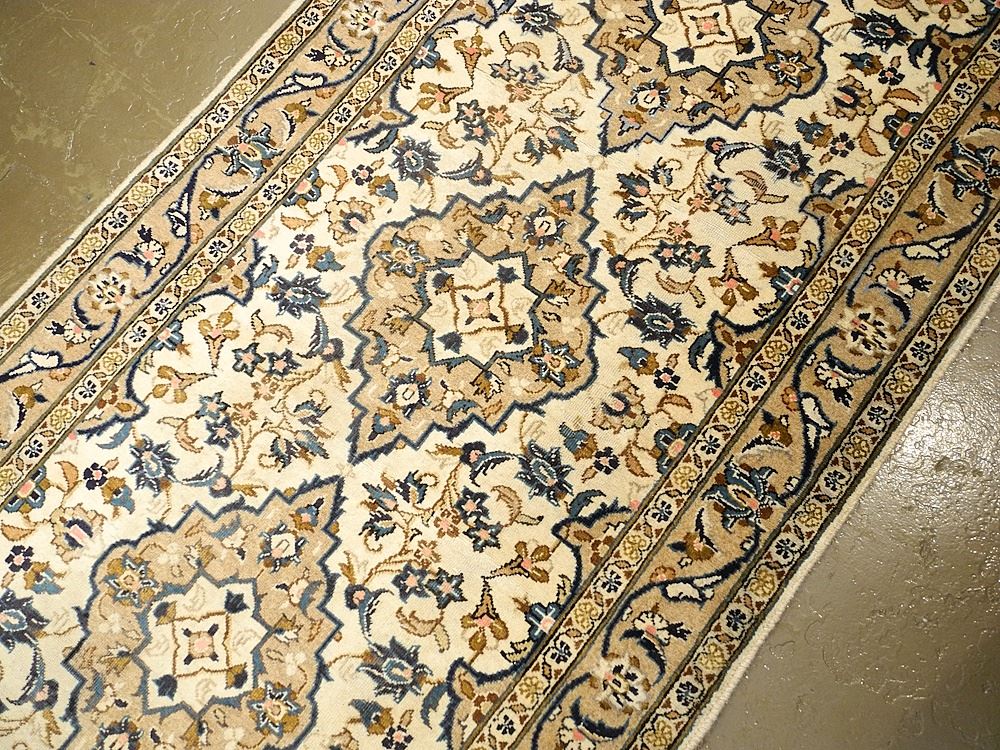 Beige Kashan Runner Approximately 3'3" x 13'.