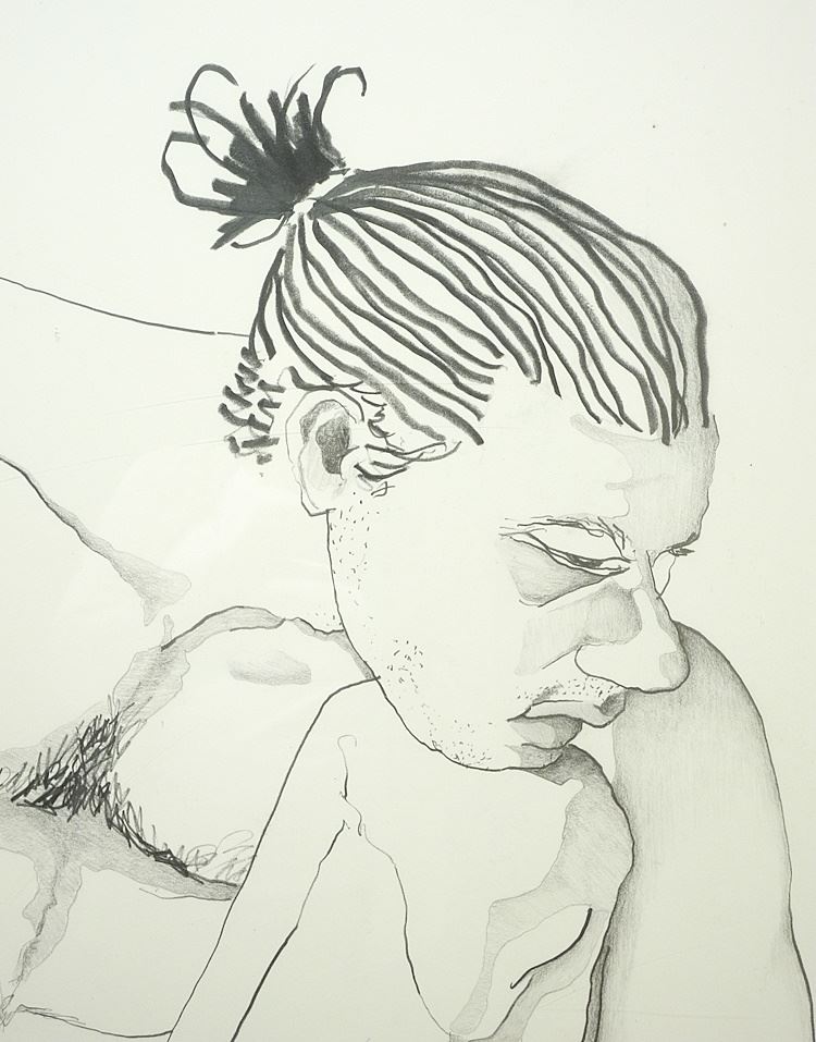 LOT 207 Graphite & Acrylic signed Leslie Poole 1987, 59" x 40", "Male". Estimate: $200 - $400 Auction Date: Tuesday, May 14 2024 at 4:00 PM