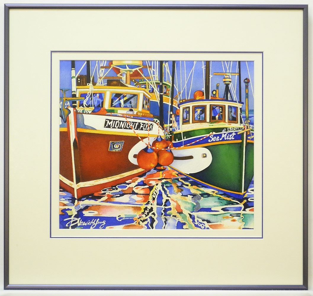 Watercolour signed D. (Dorset) Norwich-Young, 11 3/4" x 13 3/8", "Midnight Flyer & Sea Mist