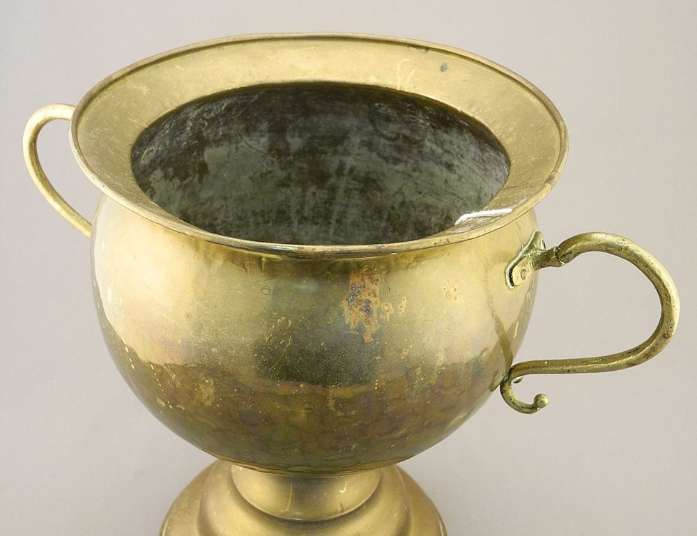 19th C. Brass Urn with Weighted Base, 11 1/8" x 14" x 8 3/4".