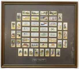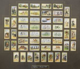 Collection of Player's Cigarette Cards, "Cycling Issued 1939", 21 3/8 x 24 3/4".