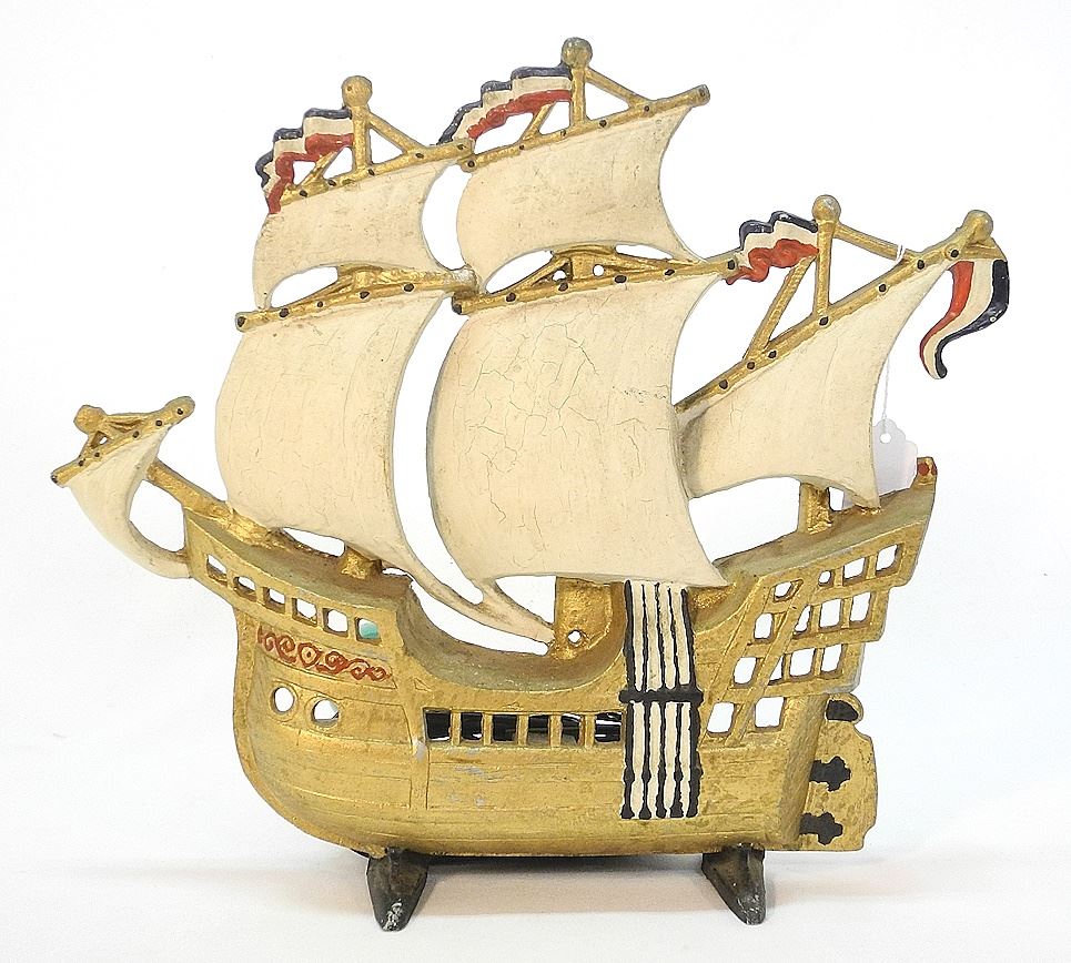 LOT 43 Cast Aluminum Galleon Lamp, 13"H. Estimate: $60 - $90 Sold For: $30 Auction Date: Tuesday, May 14 2024 at 4:00 PM