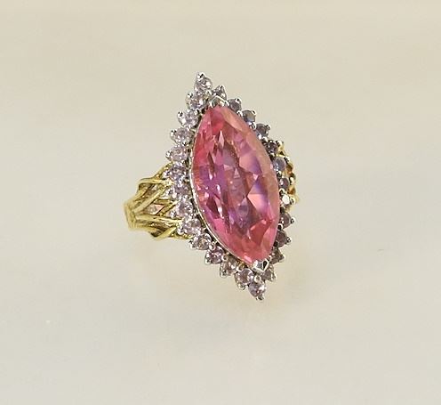 LOT 73 Gilt Silver (marked 925) Pink & White Stone Ring, Size 6, 7.45 Grams Estimate: $180 - $240 Auction Date: Tuesday, May 14 2024 at 4:00 PM