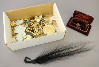 LOT 143 Collection of Osprey Feather / Costume Jewelry / Knives / Bulova Wristwatch. Estimate: $50 - $100 Sold For: $30 Auction Date: Tuesday, May 14 2024 at 4:00 PM