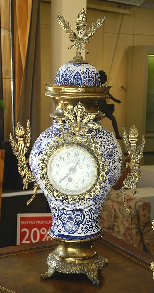 LOT 53 3 Piece Dutch Delfts Clock Garniture , 20" - 23"h, as found (ceramic sections restored). Estimate: $60 - $100 Sold For: $300 Auction Date: Tuesday, July 09 2024 at 4:00 PM