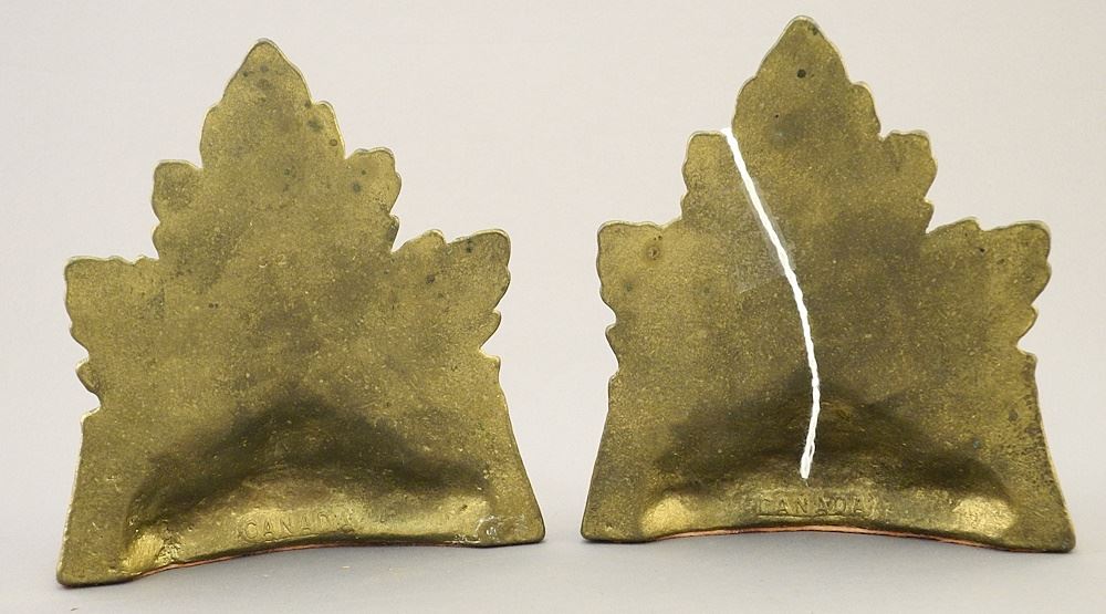 Pair of Brass "Maple Leaf & Beaver" Bookends, Marked Canada, 5 1/8"h.