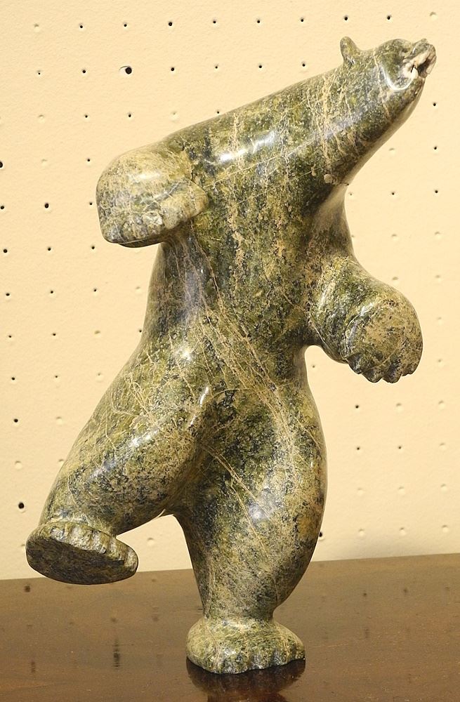 Inuit Carved Hardstone, 10"h, "Standing Bear" (head repaired).
