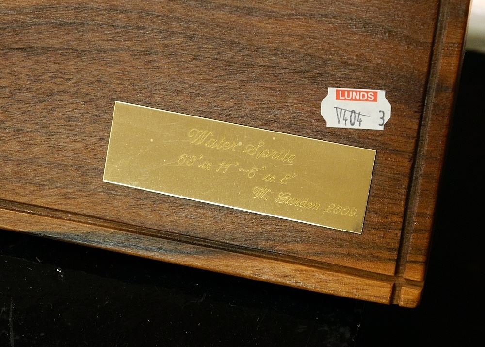 LOT 50 1/2 Hull Model by Bill (William) Garden, "Watersprite", 33 1/4"L. Estimate: $150 - $300 Sold For: $325 Auction Date: Tuesday, July 09 2024 at 4:00 PM
