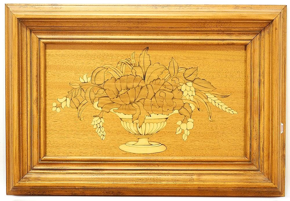 LOT 251 Marquetry Panel signed Bill Dixons / 91, 15 3/8" x 22 1/2", "Bowl of Flowers". Estimate: $50 - $60 Sold For: $20 Auction Date: Tuesday, July 09 2024 at 4:00 PM