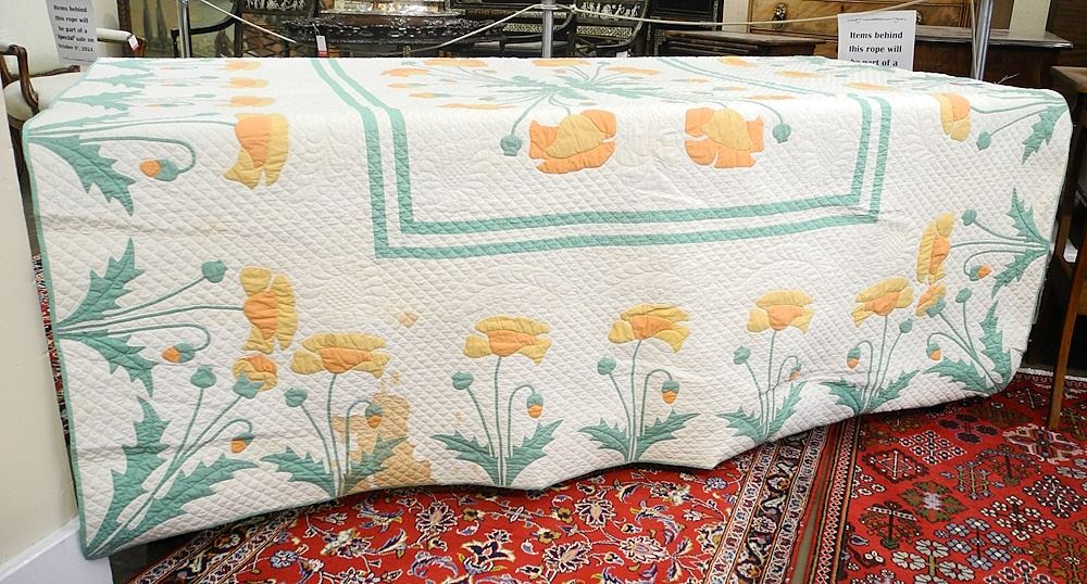 LOT 188 Patchwork Quilt, Approximately 7'1" x 6'1" (mild discoloration noted). Estimate: $60 - $100 Auction Date: Tuesday, July 09 2024 at 4:00 PM