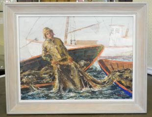 Oil on Canvas signed R. (Richard C) Hasenfus, 17 3/4" x 24", "Fisherman"