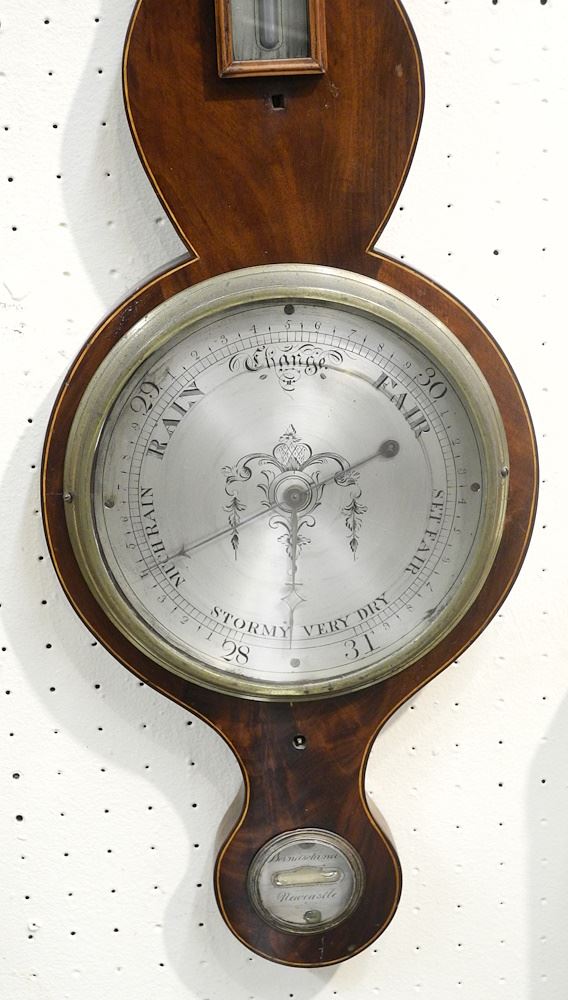 18th Century Bernaschina Newcastle String Inlaid Mahogany Banjo Barometer, 39 1/4" H
