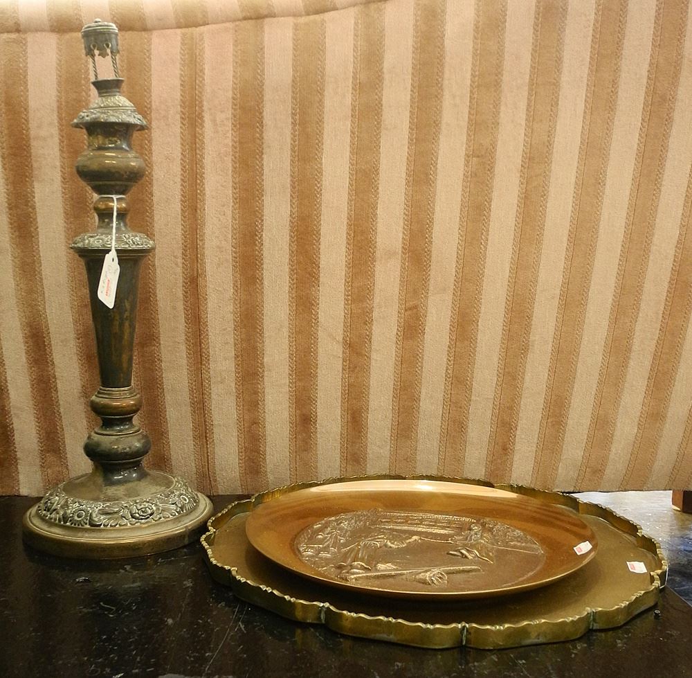 LOT 108 Chinese Bronze Relief Wall Plate, 10 1/2" D., Chinese Brass 14" Tray & 16" Silver Plated Candlest Estimate: $50 - $100 Auction Date: Tuesday, September 10 2024 at 4:00 PM