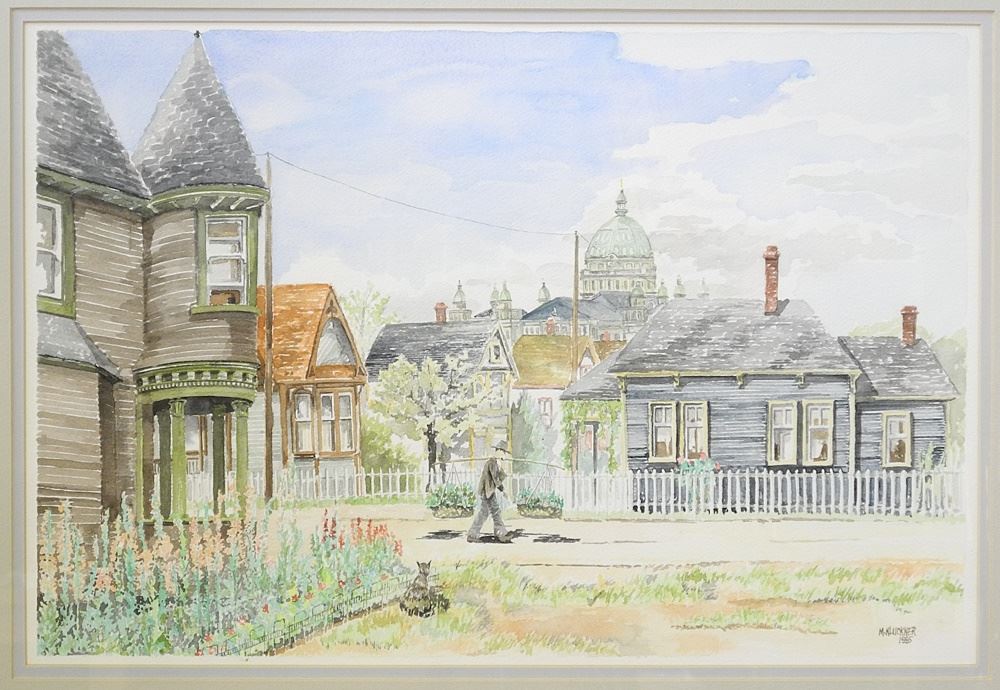 LOT 219 Watercolour signed M. Kluckner 1985, 12 1/4" x 18 1/4", "Old Victoria, BC". Estimate: $60 - $120 Sold For: $80 Auction Date: Tuesday, September 10 2024 at 4:00 PM