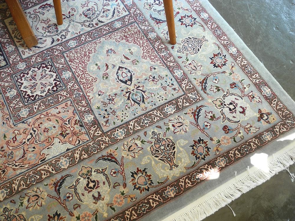 Hand Knotted Wool Qum Compartment Carpet, Light Blue Field, 10'10" x 7'.