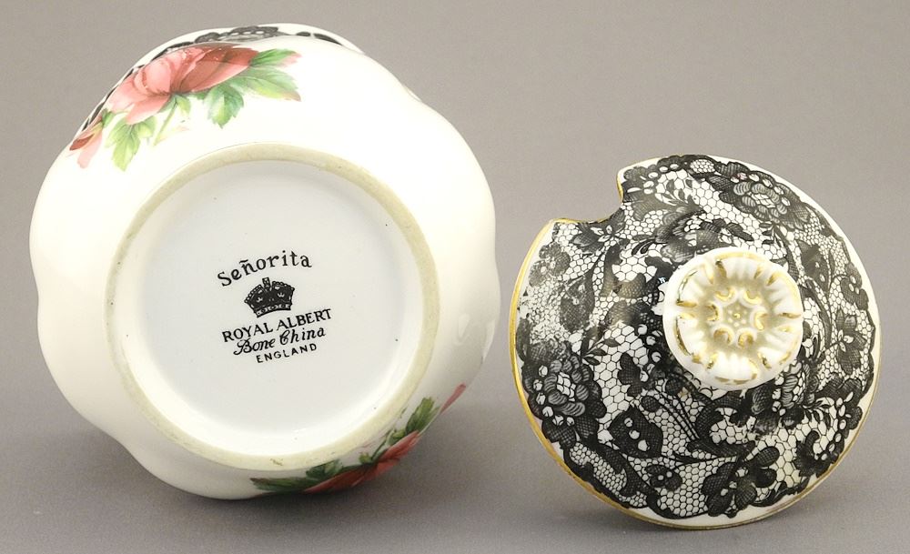 LOT 301 Royal Albert "Senorita" Jam Jar, 4 1/4"h. Estimate: $50 - $60 Sold For: $90 Auction Date: Tuesday, September 10 2024 at 4:00 PM