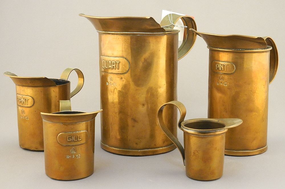 LOT 320A 5 Royal Navy Style Copper Measures, 3 1/8" - 6 5/8"h. Estimate: $50 - $60 Sold For: $150 Auction Date: Tuesday, September 10 2024 at 4:00 PM
