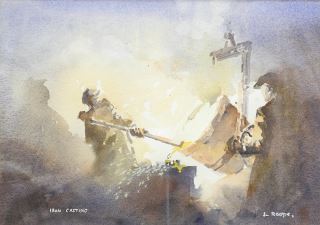 Watercolour signed L. (Leonard) Roope, 8 1/4" x 11 7/8", "Iron Casting".