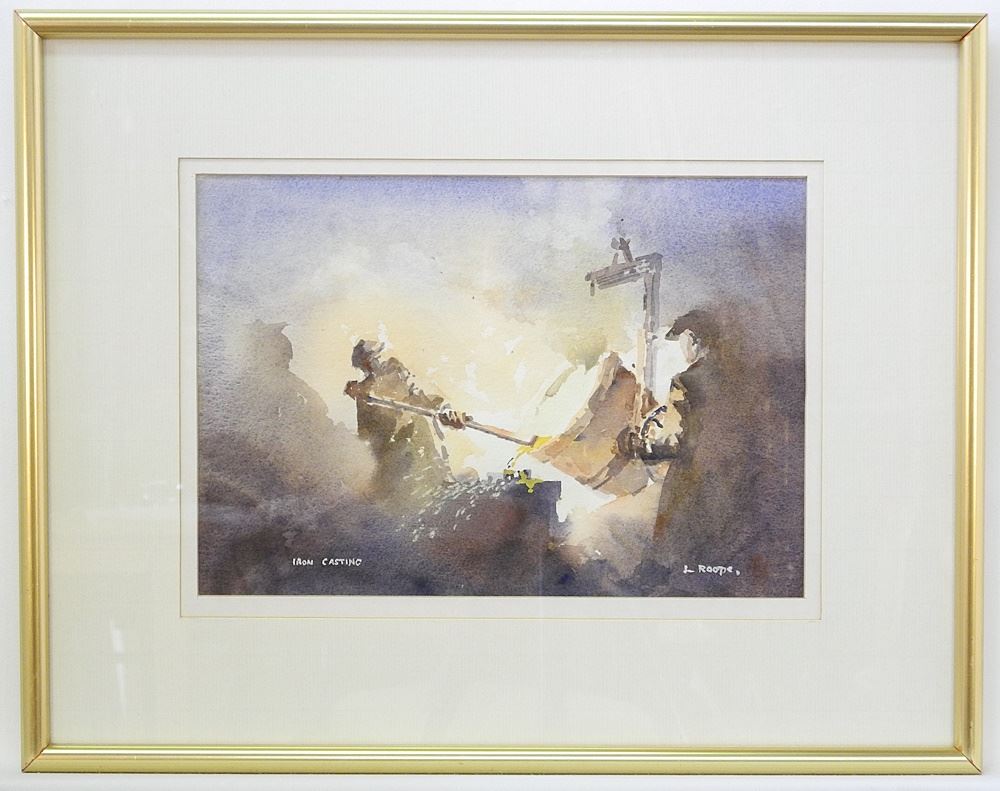 LOT 230 Watercolour signed L. (Leonard) Roope, 8 1/4" x 11 7/8", "Iron Casting". Estimate: $60 - $100 Sold For: $70 Auction Date: Tuesday, September 10 2024 at 4:00 PM