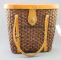 Hand Tooled Mexican 1950's Leather & Rattan Bag / Purse.