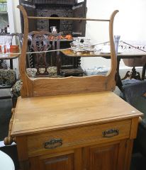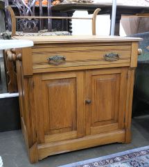 LOT 273 Antique Elm Washstand with Harp Rail. Estimate: $80 - $120 Auction Date: Tuesday, September 10 2024 at 4:00 PM