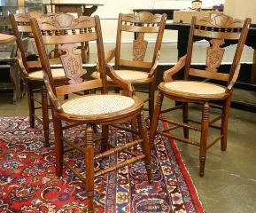 LOT 147 4 Eastlake Walnut Cane Inset Chairs, 34"h. Estimate: $60 - $100 Sold For: $110 Auction Date: Tuesday, September 10 2024 at 4:00 PM