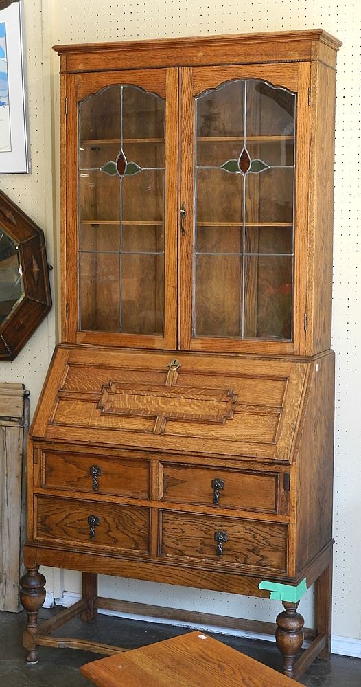 Vintage Oak Secretary Bookcase.