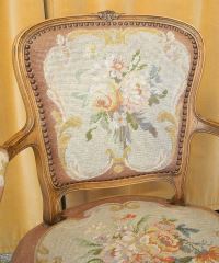 Fruitwood Louis VX Open Arm Chair, 34 3/8"h.